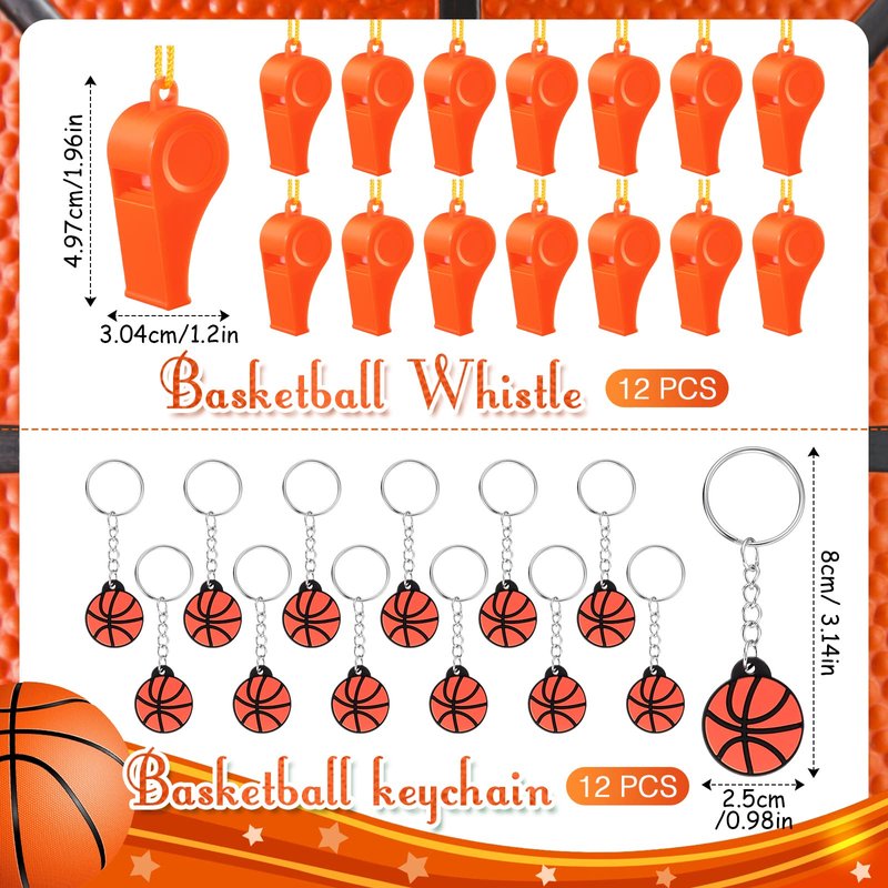 - Basketball Party Favors: there are a total of 120 pieces of basketball party supplies, including 10 sheets of basketball temporary tattoos, 50 adhesive basketball stickers, 12 small basketball toy, 12 basketball silicone bracelets, 12 orange whistles, 12 basketball keychains and 12 double loop lanyards, different items with adequate quantity to satisfy your diverse and basketball party using, decorating and sharing needs
