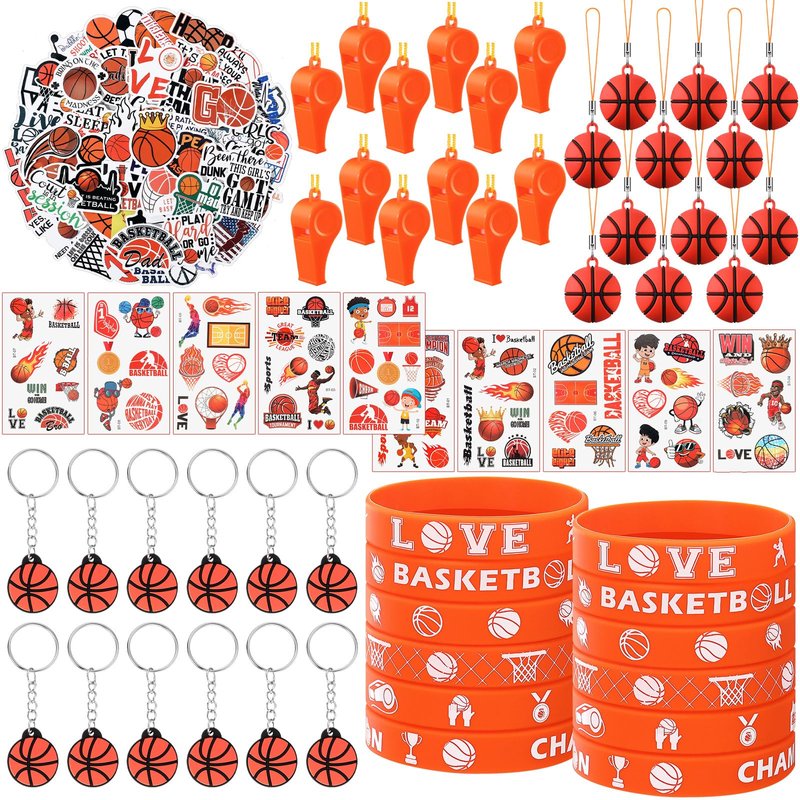Aoriher 120 Pieces Basketball Party Favors Set, Basketball Goodie Bag Fillers, Toy Whistle Silicone Bracelet Luminous Tattoo Sticker Keychain for Basketball Party Supplies