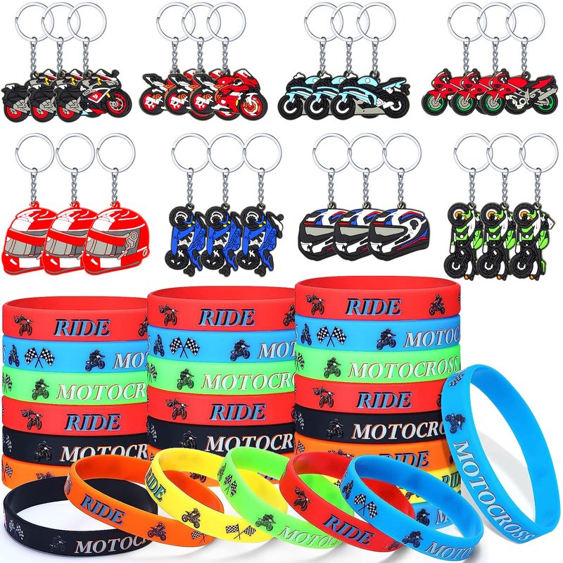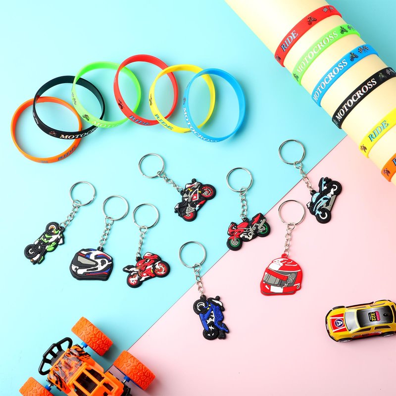 - Widely Application: the motorcycle key rings and wristbands are suitable for motocross birthday party, dirt bike party, racing theme parties, kids birthday party, carnivals, can be applied as party bag fillers, party favors, which will be a hit for kids and make party more memorable