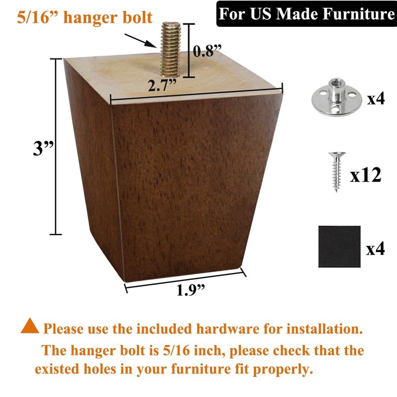 - PERFECT FIT - The walnut color legs fit all kinds of furniture, not just sofa and chairs. The legs work on cabinet, dresser, bed, sideboard, coffee table and etc.