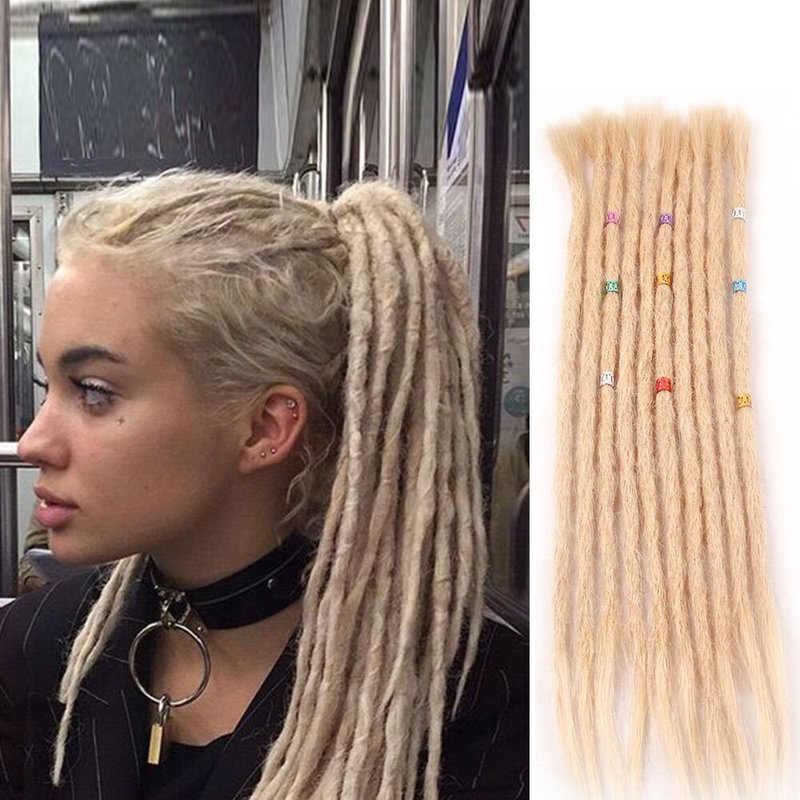 Aosome Blonde Color Real Human Hair Dreadlock Extensions, Full Handmade 10 Strands Braiding Hair Extensions 20 inch