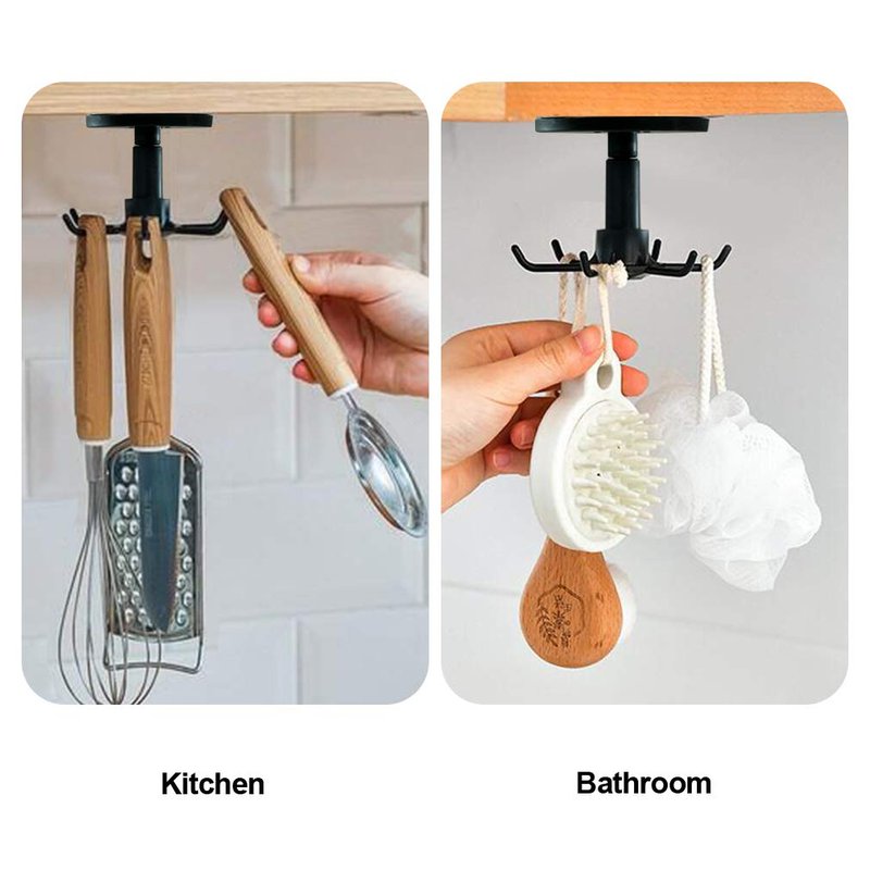 - 【Novel Design】: Under cabinet utensil holder with 6 claws, can be rotated 360 degrees, convenient for you to take off or hang