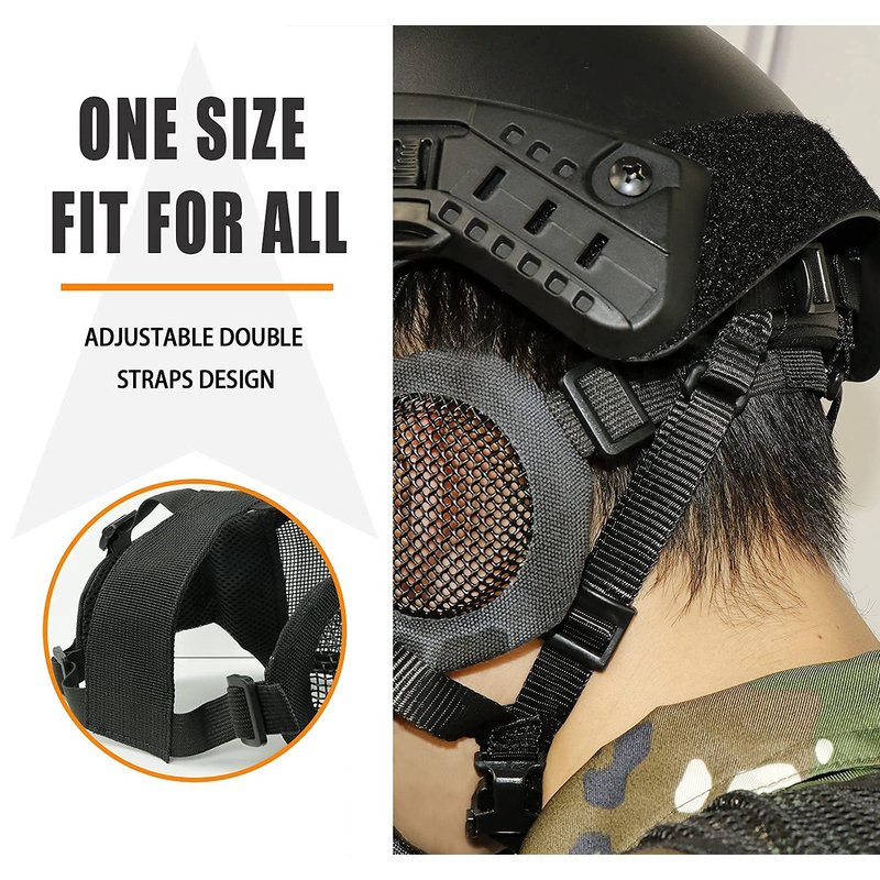 - ✨Mesh ear protector with adjustable straps Perfect for airsoft BB gun close quarters battles cosplay and party