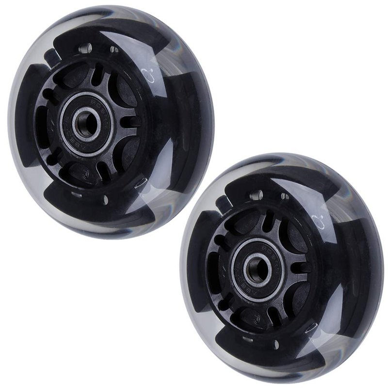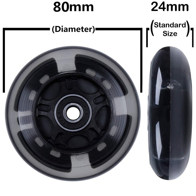 AOWISH 2-Pack Light Up Scooter Rear Wheels 80mm Flash Flashing Inline Skates Replacement Wheel with Bearings ABEC 9 for Adjustable 3-Wheel Kick Scooters (Black)