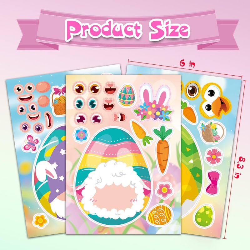 - Each sticker measures a kid-friendly 8.3x6 inches, easy to peel off, making them perfect for little hands and ideal for Easter gifts, decorations, party favors, crafts, and easter basket stuffers.