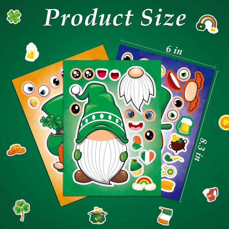 Aowplc 32 Sheets St Patricks Day Make A Face Stickers Saint Patricks Gnomes Crafts Stickers for Kids St.Patrick's Day Party Favors Supplies Classroom Gifts