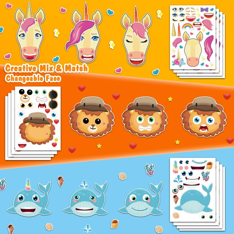 Aowplc 48 Sheets Make-a-Face Animal Stickers Mix and Match for Kids Party Favors Supplies Activities Crafts