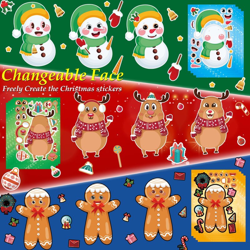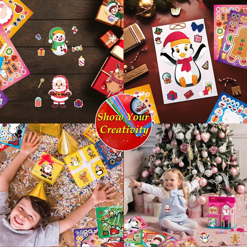 Aowplc Christmas Stickers 64 Sheets Make Your Own Christmas Characters Stickers for Kids Christmas Party Favors Crafts Activities Supplies
