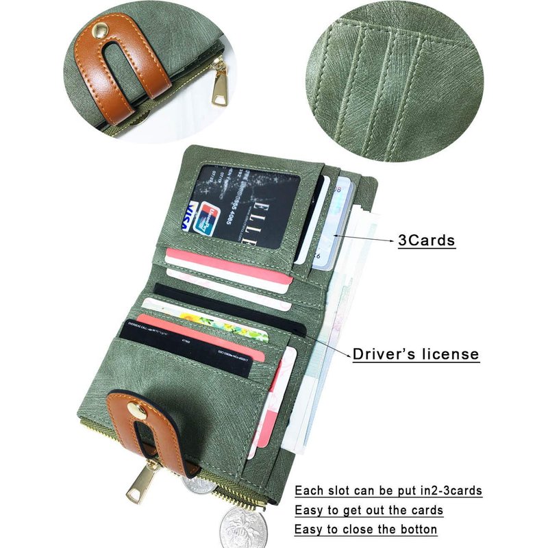 - ❤Internal Structure: Ladies wallets include 1 Cash Slots + 1 Zipper Pocket for coins or key + 1 ID or photo window + 9 Card Slots. Womens wallets bifold and thin design are apt to hold cash, credit cards, coin,and other petty things,each card slot can be put in 2 or more cards. It stays closed and flat when stuffed.
