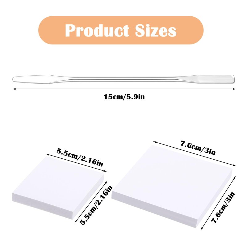 - 【High Quality and Convenience】Upgrade your manicure with our premium PE film nail polish mixing paper. We have two sizes of paper, the size of the large paper is 2.9*2.9 inches, and the size of the small paper is 2.1*2.1 inches. Strong yet lightweight, our nail palette mixing stick is made of stainless steel and is very durable. Provides portability for busy manicurists. Whether at home or traveling, you can easily mix and match colors anytime, anywhere, and easily create a perfect nail design.