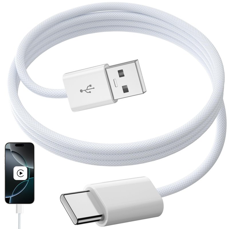 APAPATEK USB-C Woven Carplay Cable for iPhone 15 Pro 16 Pro, USB-A to USB-C Cable Car Play Wire Data Transfer Car Audio Car Phone Cord Android-Auto Carplay Cable for Galaxy S24 S23 S22 S21 3.3ft White