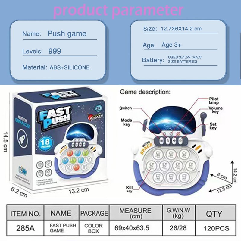 - 【2024 latest Fast Push Bubble Game】Take the traditional bubble pop game to a higher level by combining fast electronic game. This pop fidget toy is a hot handheld game for anyone. Follow the music and quickly press the light-up button with your fingers to experience endless gaming pleasure.