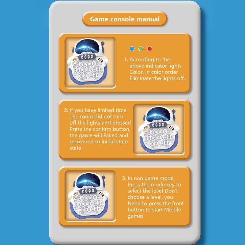 Come to pick up a wonderful gift for your favorite person!The cute game console design which is lightweight and fits perfectly in kids, teens and adults' hands. You could carry it with you on any occasions whether indoors or outdoors, in the queue waiting, or keep your baby occupied and entertained in long-time travel. For those with more of a gaming mindset, this wonderful little toy is superior by adding a more competitive, quantifiable element to using pop games.This versatile game console features 4 different game modes not only for leveling up your skills in pop but help you to get stress-relieved.The Interactive Fidget Toys is pop pro light up game, the wide all-ages experience! Help kids stay away from phones and tablets, effectively reduce screen time. Children can play with friends or parents at the party and any outdoor/indoor activities. Fidget toy games can also help you focus and beat boredom. This decompression toy is a good helper to relieve work, study, family, and office pressure and generate happiness.