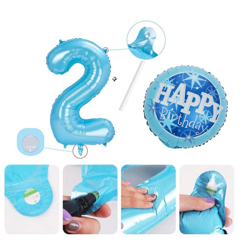 - Blue 2nd birthday theme foil balloons kit includes 32in jumbo number 2 foil balloon (1) and 18in blue round birthday foil balloon(2), great to decorate your son/nephew 2nd birthday party.