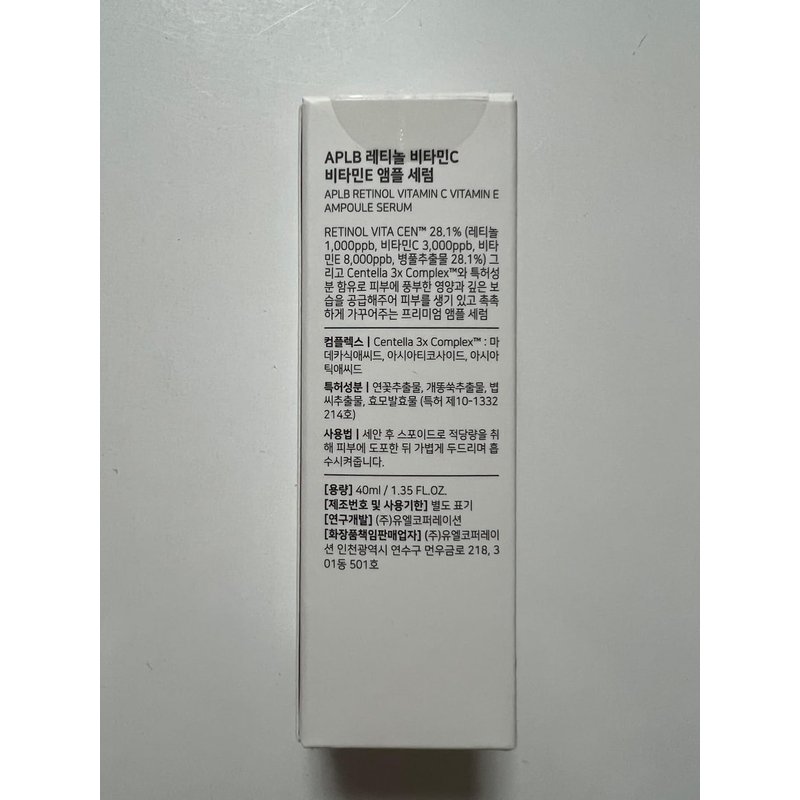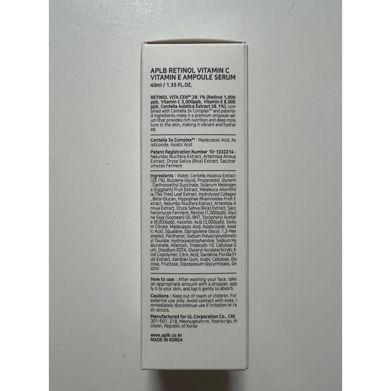 APLB Retinol Vitamin C Vitamin E Ampoule Serum | RETINOL VITA CEN™ 28.1% 1.35 FL.OZ/Korean Skincare, Long lasting moisturizing, Revitalize for gentle and improve skin texture