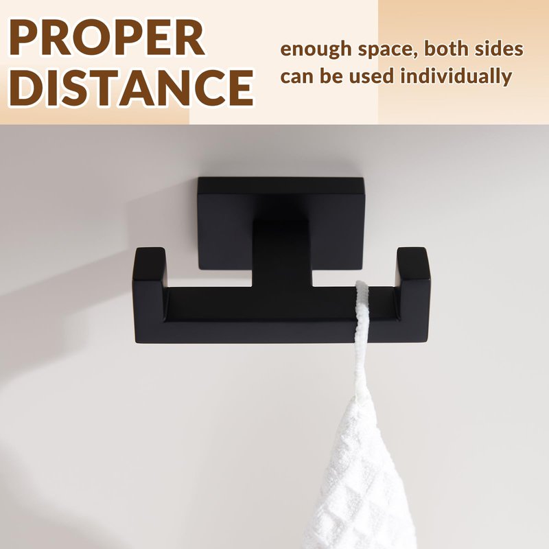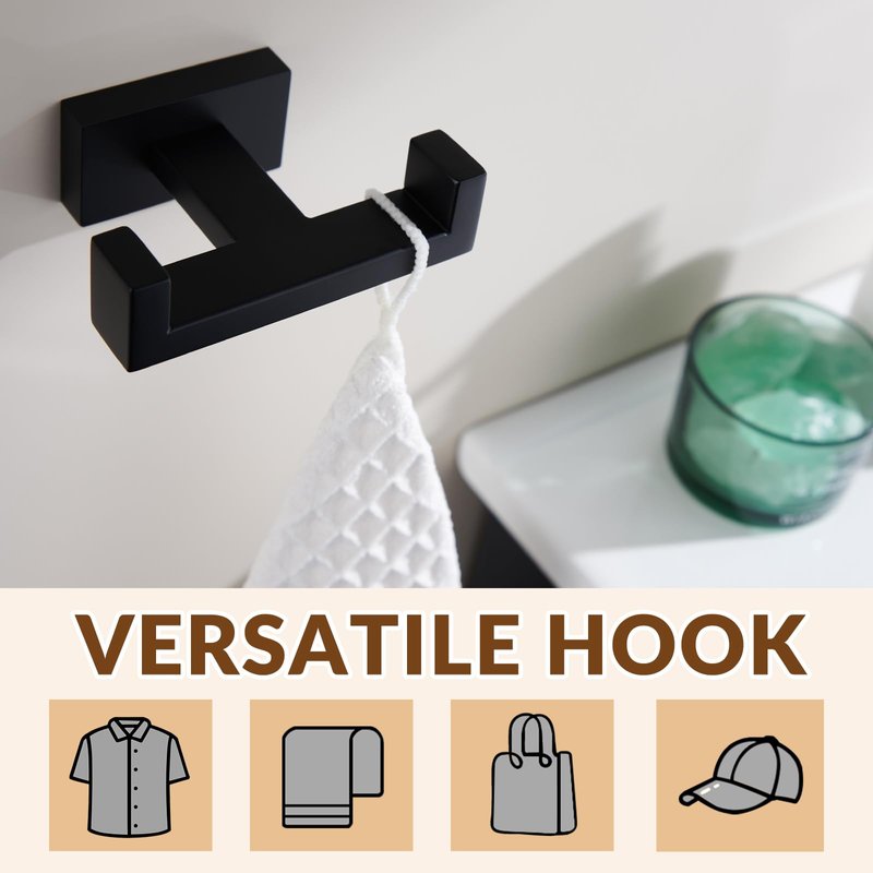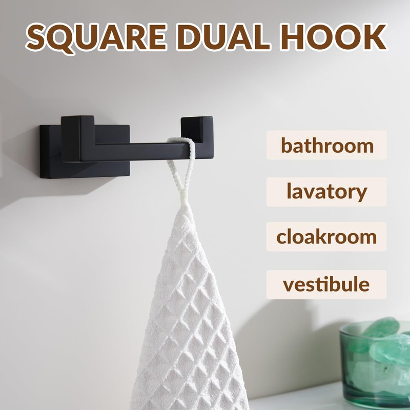 APLusee Double Robe Towel Hook, Stainless Steel Square Dual Coat Hook, Utility Bath Kitchen Storage Hanger Holder, Matte Black