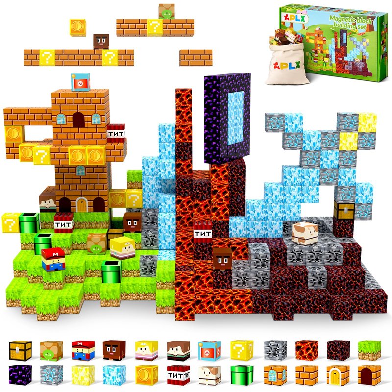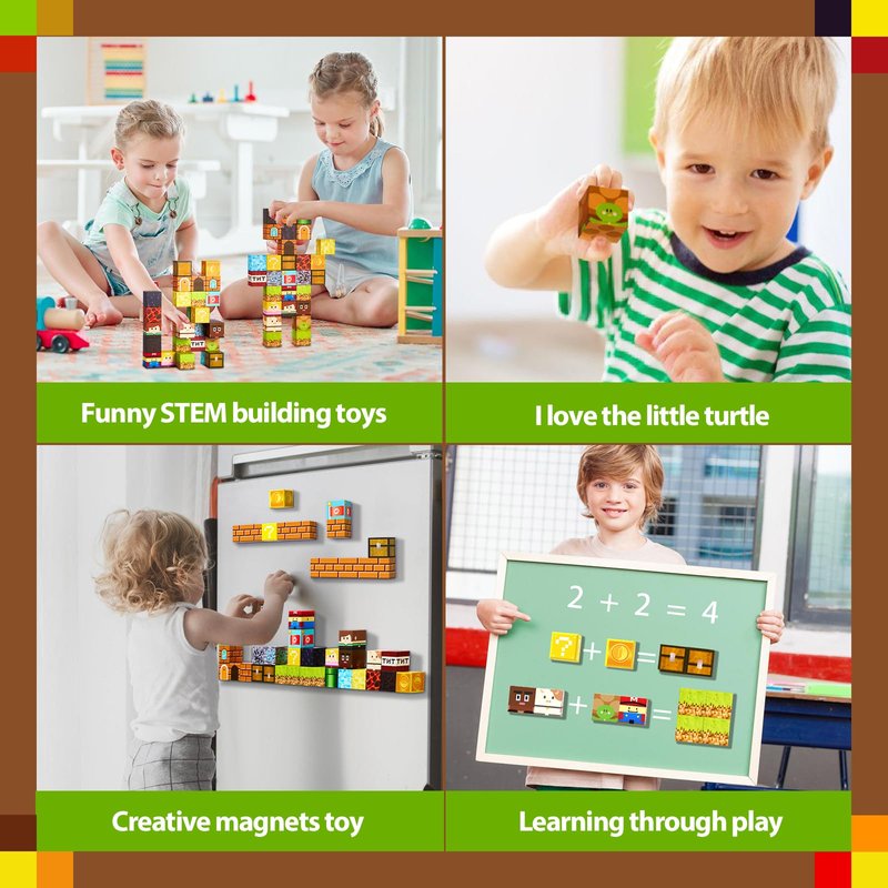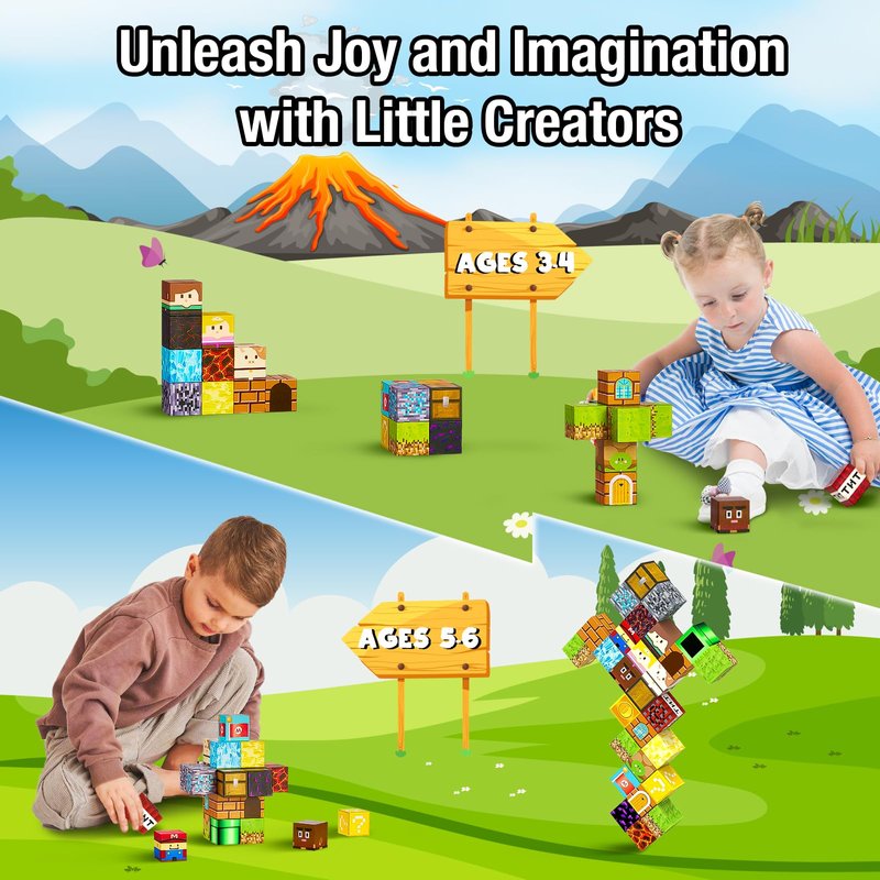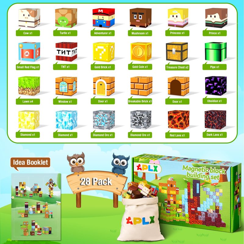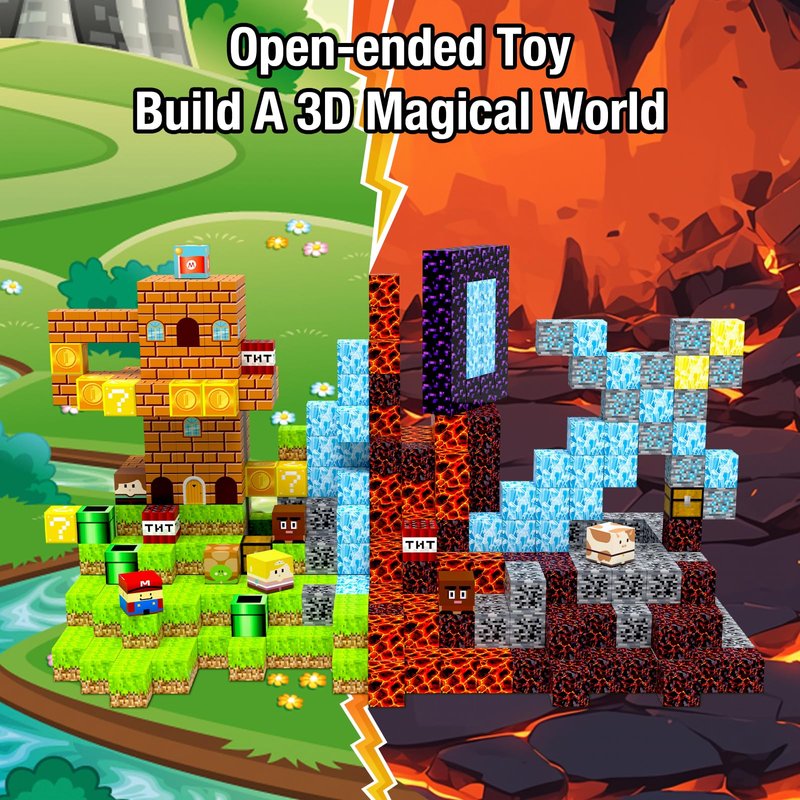 • Dual-Themed World Building Fun: Embark on an exciting magnetic building adventure and explore dual-themed worlds of grassy castles and lava-filled mines! This 28-piece magnetic block set, with its diverse patterns and open-ended play design, sparks boundless creativity in children. From simple structures to imaginative adventure scenes, kids can unleash their creativity and build their own magical world