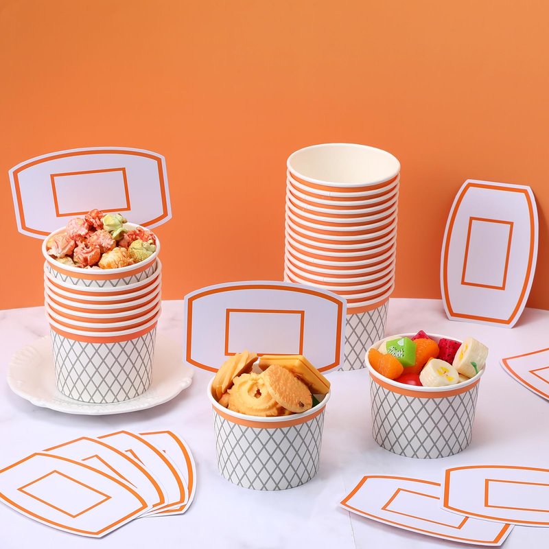 The snack cups party supplies are designed in the element of basketballs with bright colors, making the cups more stylish and attractive, can better attract people's attention and leave a deeper impression on others