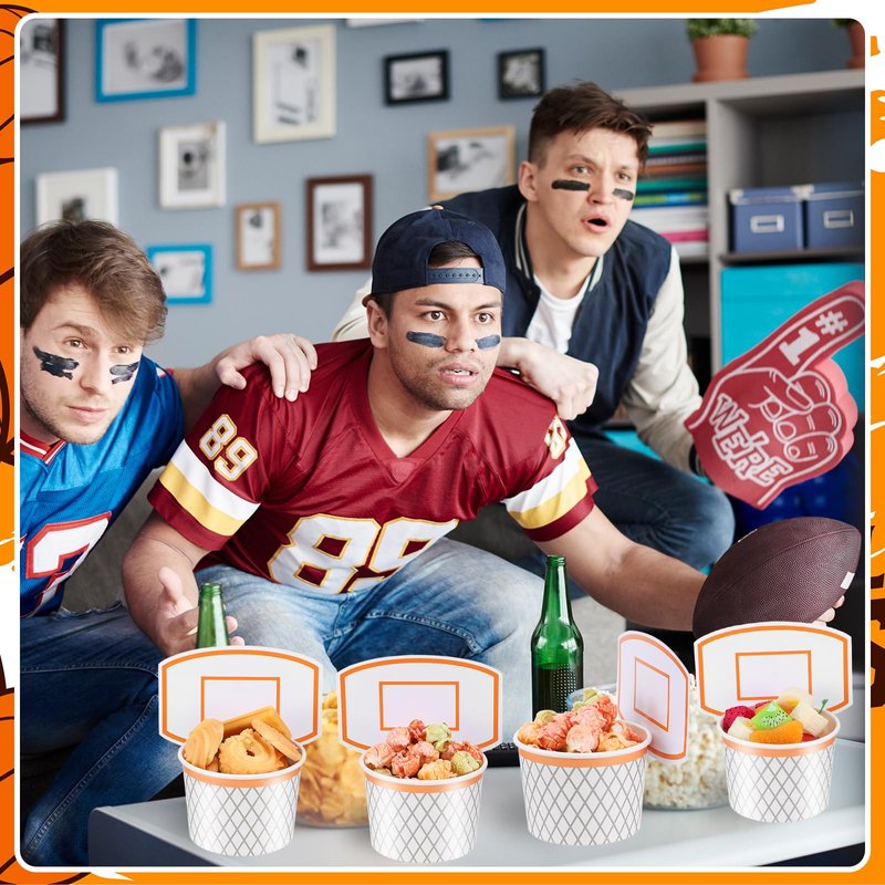 APLZGMG Basketball Hoop Snack Cups, 24 Sets Basketball Hoop Paper Treat Cups Basketball Party Supplies Disposable Treat Food Bowls Kids' Party Paper Cups for Basketball Themed Party Decorations