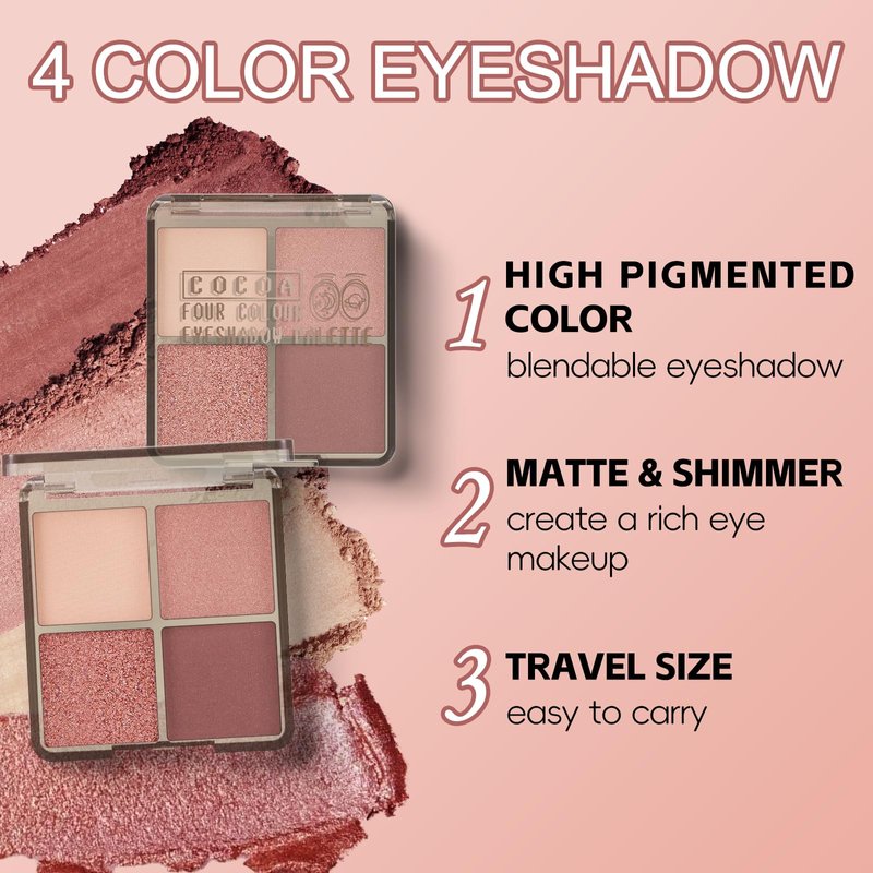 - 【Ideal Gift】:This 4 colors eye makeup palette makes a great gift for mom, wife or girlfriend on birthdays, Christmas, Thanksgiving and other holidays.