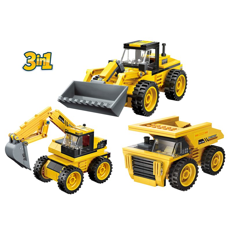 3 in 1 Construction Team Building Block Set (203 Pieces) Build a Loader, Dump Truck or Excavator