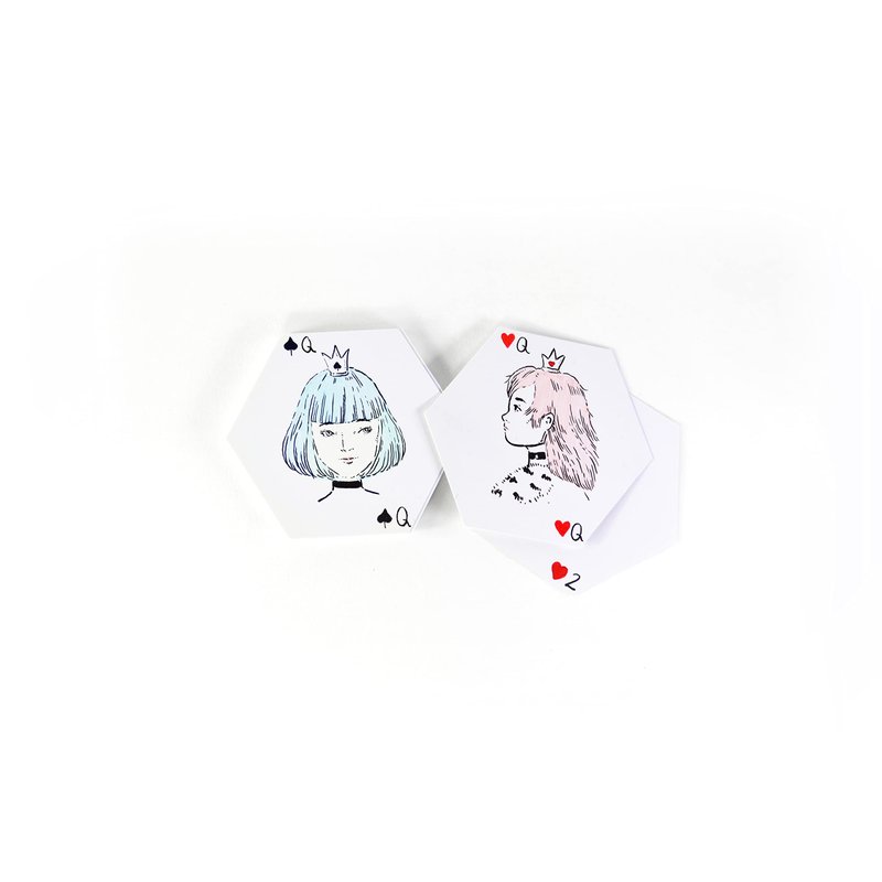 These are 120 hexagon size, matte finish, blank playing cards. They are easy to write on and the perfect size for creating your own games, art projects or flash cards. We are avid game makers and wanted the highest quality blank playing cards to use when making our own games. We made these blank playing cards using casino quality card stock. The cards are 310 GSM (grams per square meter). You will really feel the difference between our blank playing cards and others' blank cards. They work best with pens and permanent markers.