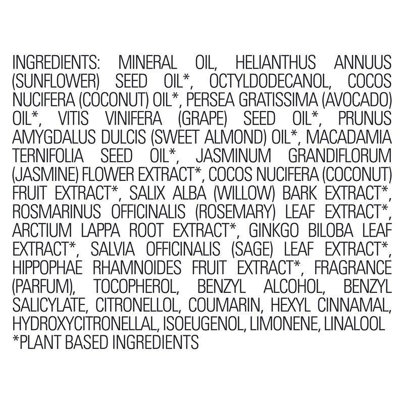 - Formulated with seven precisely selected oils, which include Grape Seed, Sunflower, Macadamia, Sweet Almond, and Avocado oil