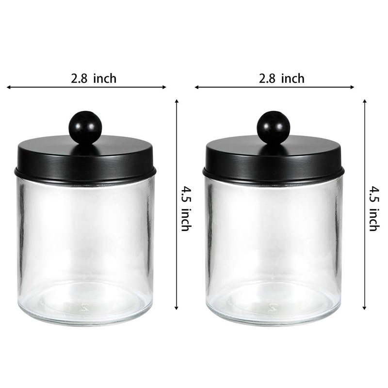 Apothecary Jars Bathroom Storage Organizer - Cute Qtip Dispenser Holder Vanity Canister Jar Glass with Lid for Cotton Swabs,Rounds,Bath Salts,Makeup Sponges,Hair Accessories/Black(2 PACK)