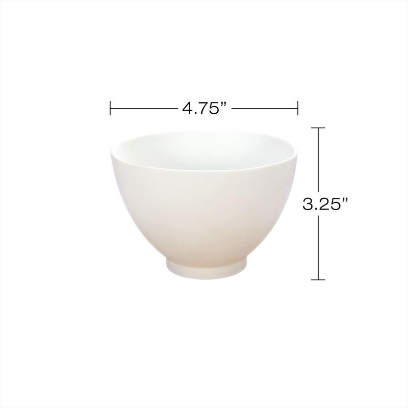 - 6-piece set includes: (1) Large Bowl: 4.75" dia x 3.25" tall (550 ml); (1) Medium mask brush with synthetic hair 6.75" L; (1) Curved head silicone mask brush 6.75" L; (1) Silicone mask fan brush 5.75" L; (1) Medium Plastic Mixing Spatula 6" L; (1) Large Plastic Mixing Spatula 8" L