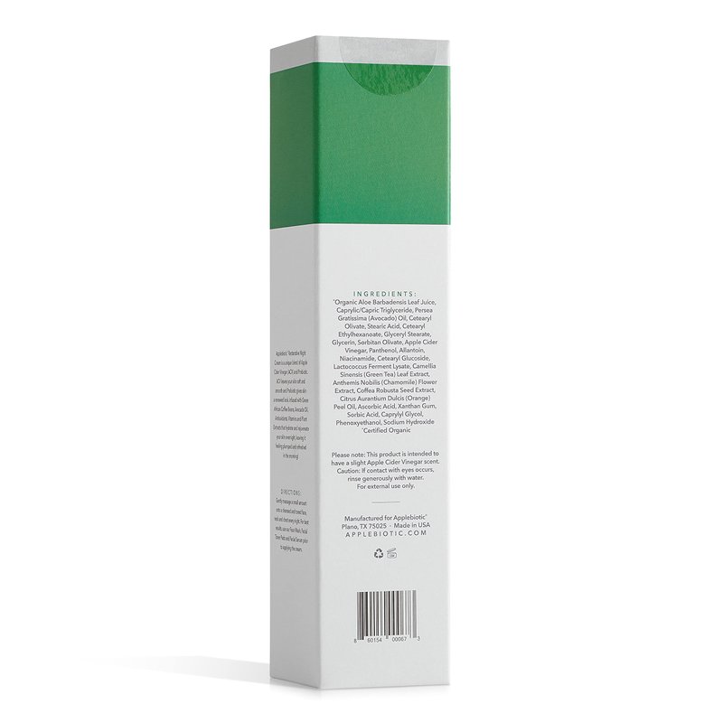 Apple cider vinegar skin care is what we do best. Paired with the power of probiotic extract, the extra strength ACV blended into our nighttime face cream moisturizer reveals the underlying beauty of your skin. The nutritive formula helps to refine & renew cells to turn back the hands of time. Defy aging with a naturally-derived skincare regimen provided by the wonders of science. Wake up feeling & looking refreshed. APPLE CIDER VINEGAR: Gently Exfoliating, pH Balancing, Spot Fading ORGANIC ALOE VERA: Rich in Essential Nutrients & Vitamins, Firms Skin, Minimizes Pores PROBIOTIC EXTRACT: Replenishes Enzymes for Deep Rejuvenation, Faster Skin Turnover & Repair AVOCADO OIL: Fatty Acids Rebuild & Regenerate Skin Structures, Locks in Healthy Hydration AFRICAN GREEN COFFEE EXTRACT: Energizes with a High Concentration of Antioxidants VITAMIN B3: Boosts Circulation to Promote Detoxification for a Naturally Beautiful Complexion GREEN TEA EXTRACT: Provides Soothing Relief for Sensitive Skin, Improves Skin's Elasticity CHAMOMILE EXTRACT: Caresses Skin with Soothing Moisture, Reduces Redness, Brightens + Made In USA – Safe, Trusted, American Made Naturally-derived Skincare Products for Men & Women Proven Results – Tested for Extreme Potency, Undiluted Apple Cider Vinegar Packs a Punch All Skin Types – Gentle Enough for ALL Skin Types: Sensitive, Dry, Combo, Oily, Acne-Prone Let your natural beauty shine through. Get ready to uncover your best skin with a state-of-the-art redness reducing face cream lotion. Detoxifying, brightening, tightening, firming & softening, our youthful ACV collection delivers the results you desire. It tackles frown lines, laugh lines & crow's feet, gives skin a supple texture & diminishes the appearance of fine lines. What are you waiting for? Do yourself a favor. Order your moisturizing facial night cream now!