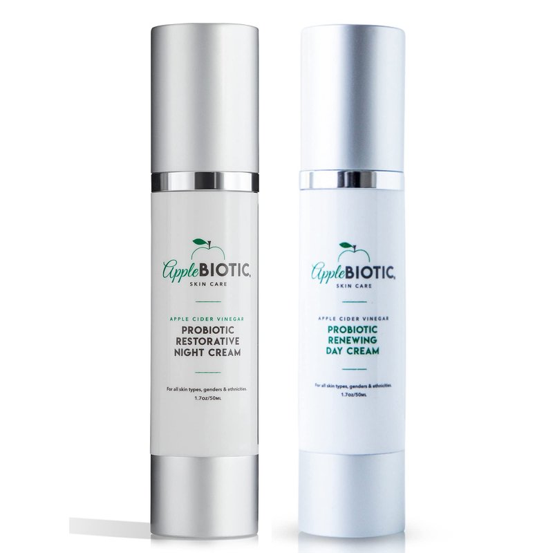 Apple Cider Vinegar Night & Day Cream Duo with Vitamin B3, Green Tea and Chamomile Extracts for Dry, Oily, Sensitive Skin, Skincare for men, women, teens