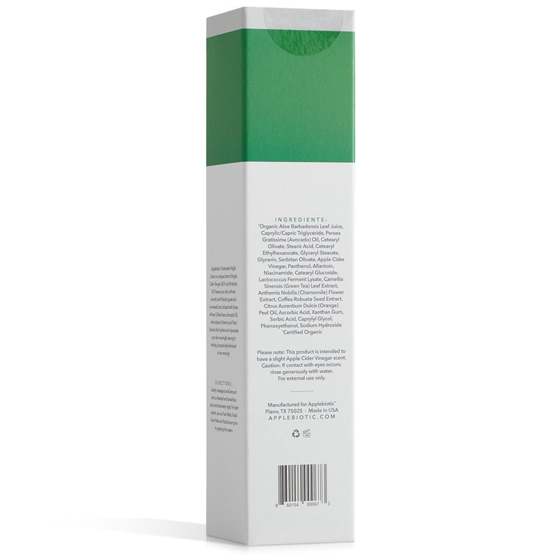 Apple cider vinegar skin care is what we do best. Paired with the power of probiotic extract, the extra strength ACV blended into our nighttime face cream moisturizer reveals the underlying beauty of your skin. The nutritive formula helps to refine & renew cells to turn back the hands of time. Defy aging with a naturally-derived skincare regimen provided by the wonders of science. Wake up feeling & looking refreshed. APPLE CIDER VINEGAR: Gently Exfoliating, pH Balancing, Spot Fading ORGANIC ALOE VERA: Rich in Essential Nutrients & Vitamins, Firms Skin, Minimizes Pores PROBIOTIC EXTRACT: Replenishes Enzymes for Deep Rejuvenation, Faster Skin Turnover & Repair AVOCADO OIL: Fatty Acids Rebuild & Regenerate Skin Structures, Locks in Healthy Hydration AFRICAN GREEN COFFEE EXTRACT: Energizes with a High Concentration of Antioxidants VITAMIN B3: Boosts Circulation to Promote Detoxification for a Naturally Beautiful Complexion GREEN TEA EXTRACT: Provides Soothing Relief for Sensitive Skin, Improves Skin's Elasticity CHAMOMILE EXTRACT: Caresses Skin with Soothing Moisture, Reduces Redness, Brightens + Made In USA – Safe, Trusted, American Made Naturally-derived Skincare Products for Men & Women Proven Results – Tested for Extreme Potency, Undiluted Apple Cider Vinegar Packs a Punch All Skin Types – Gentle Enough for ALL Skin Types: Sensitive, Dry, Combo, Oily, Acne-Prone Let your natural beauty shine through. Get ready to uncover your best skin with a state-of-the-art redness reducing face cream lotion. Detoxifying, brightening, tightening, firming & softening, our youthful ACV collection delivers the results you desire. It tackles frown lines, laugh lines & crow's feet, gives skin a supple texture & diminishes the appearance of fine lines. What are you waiting for? Do yourself a favor. Order your moisturizing facial night cream now!