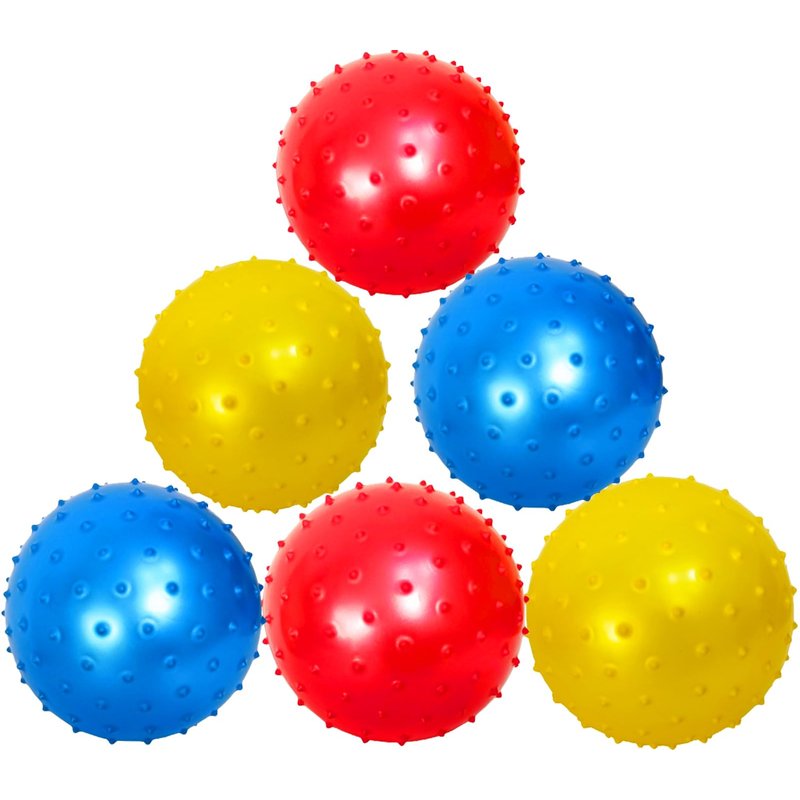 - 7-inch Knobby Balls, Pack of 6 with 1 Air Pump. Made of high-quality, non-toxic PVC material, these sensory balls are safe for kids to play with. They are perfect for indoor and outdoor activities, birthday parties, and carnivals.
