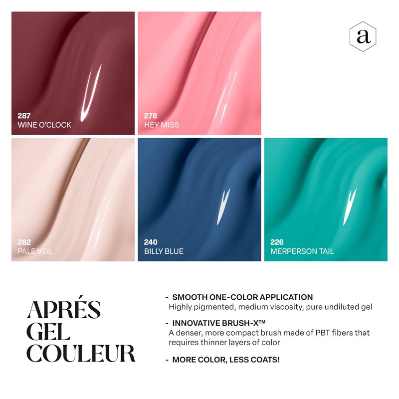 Apres Gel Couleur Combo Set, 5 Color Gel Nail Polish, Bright Nude Pastel Colors with Brush-X Nail Art Brush, 2024 Edition (Set 10)