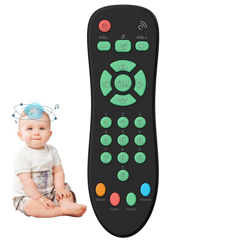 - MUSICAL AND MULTI LANGUAGE: Our play remote includes soft light and many sounds, help strengthen important senses like sight and hearing. This toy remote for baby with English, French and Spanish, keeps baby busy for a long time.