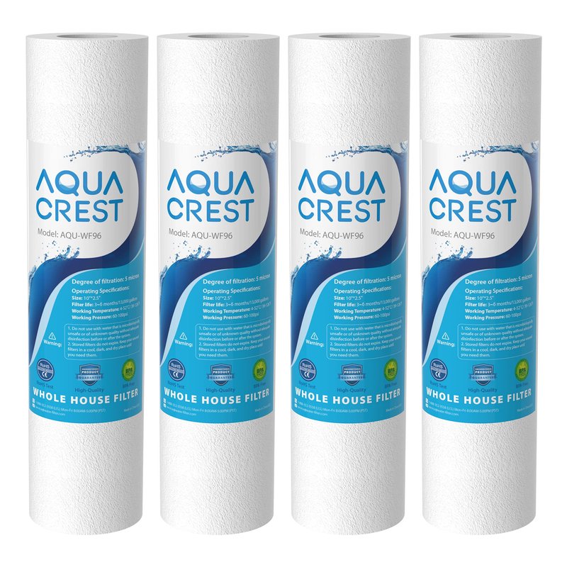 AQUA CREST AP110 Whole House Water Filter, Sediment Filter, 5 Micron, Replacement for 3M® Aqua-Pure AP110, Culligan® P5, APEC, GE FXUSC, Whirlpool®, Any 10" x 2.5" Home Water Filter, Pack of 4