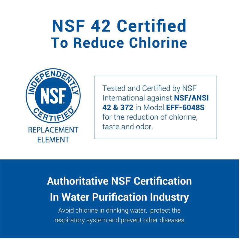- What you get in this AQUACREST refrigerator water filter is an excellent prior filtration performance that stands on par with what you get from the original brand, backed by the standard NSF 42 and 372 certifications. Unlike the generic brands, our refrigerator water filter relies on the 100% superior coconut shell carbon block to get rid of different types of impurities from your water.