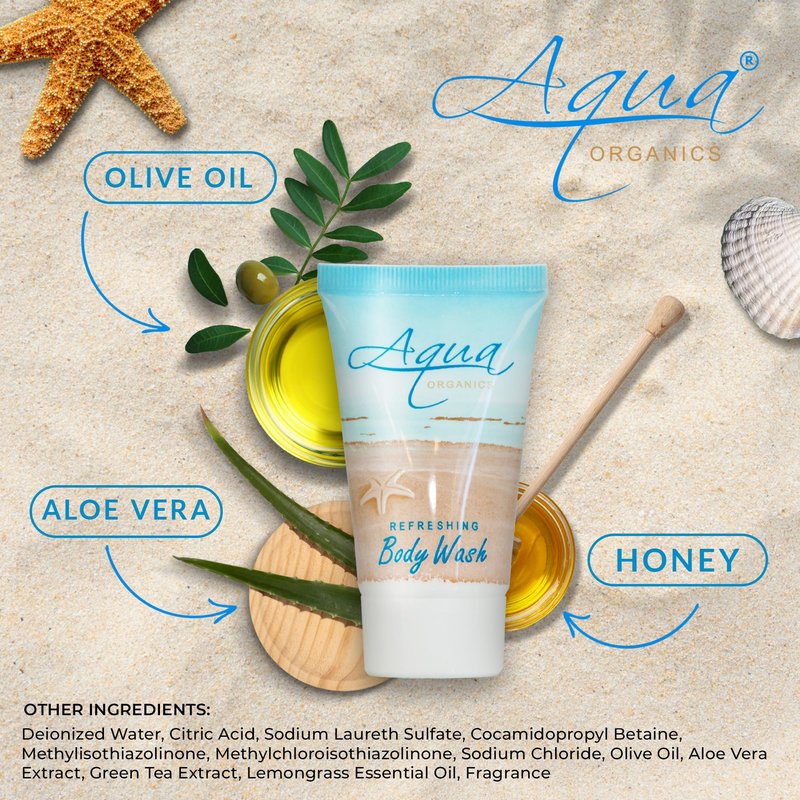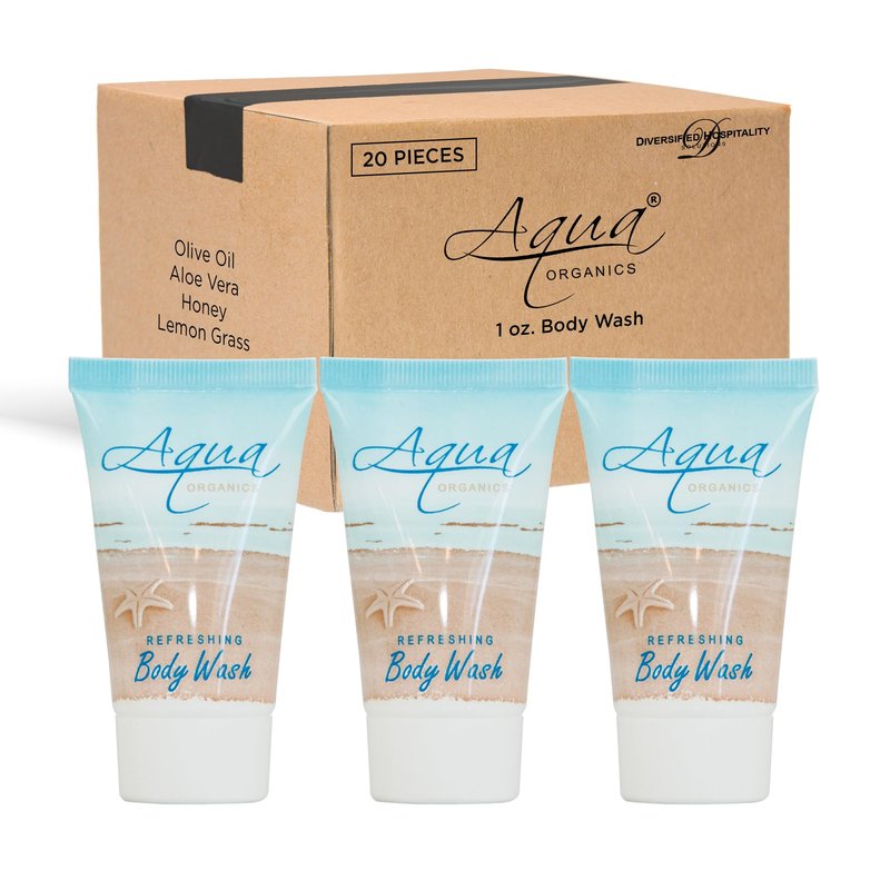Aqua Organics Body Wash, Travel Size Hotel Amenities, 1 oz (Case of 20)
