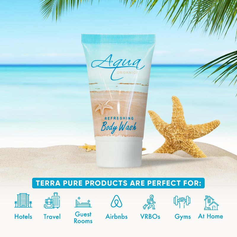 Aqua Organics Body Wash, Travel Size Hotel Amenities, (Case of 20) 1 oz