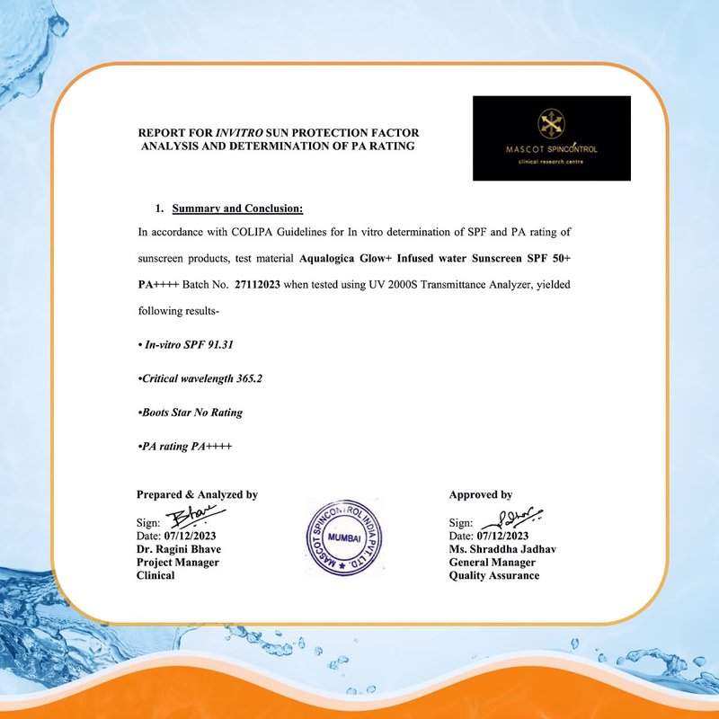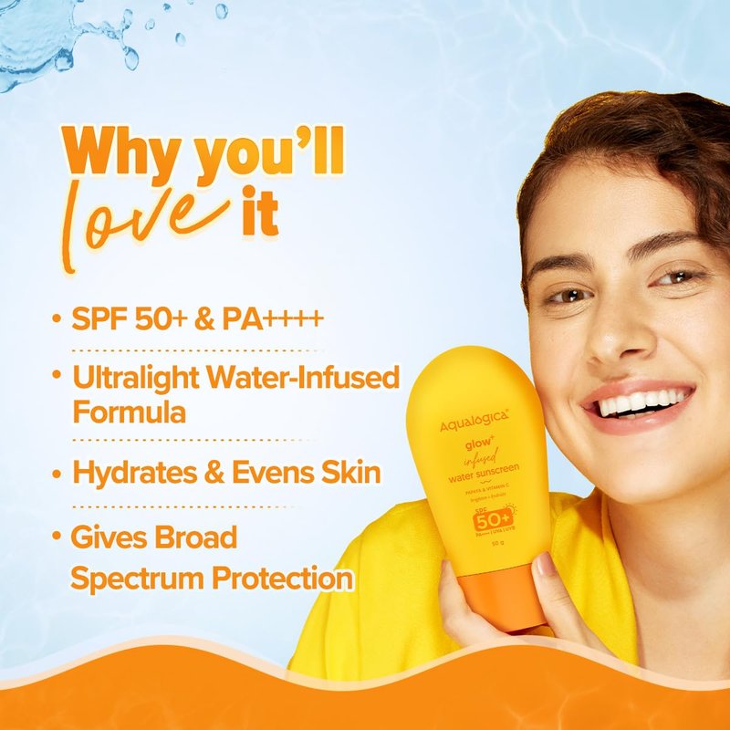 Aqualogica Glow+ Infused Water Sunscreen with SPF 50 & Pa++++ | with Papaya & Vitamin C | Ultralight Water-Infused Formula | Gives Glowing, Hydrated Skin |