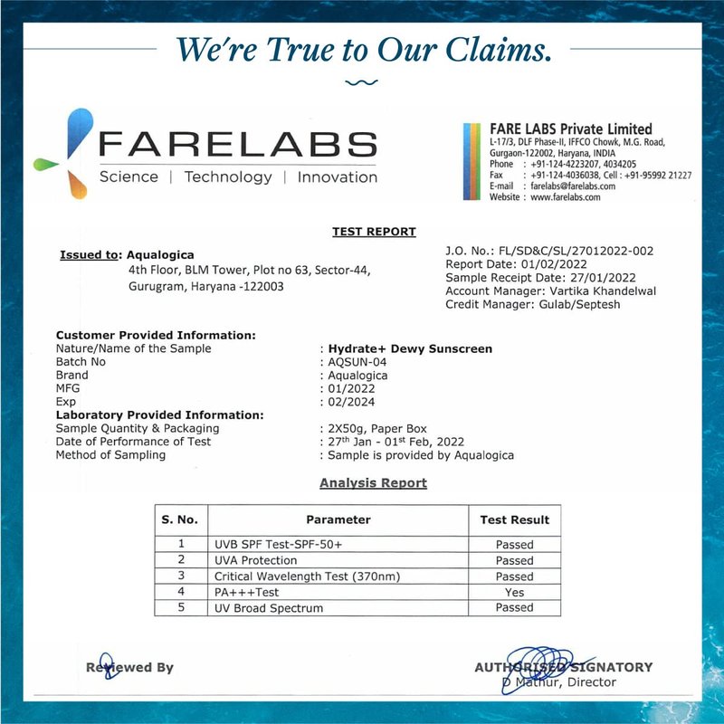- SPF 50 and PA+++, aqualogica hydrate+ sunscreen is non-greasy.