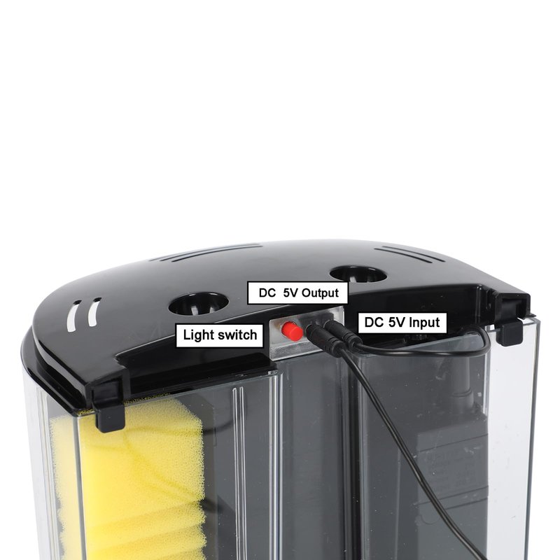 - Note: No USB power adapter included, the tank need power of DC 5V/ 2A. Make sure the adapter you use is powerful enough. Insufficient power of the adapter may cause the light or the pump not working.