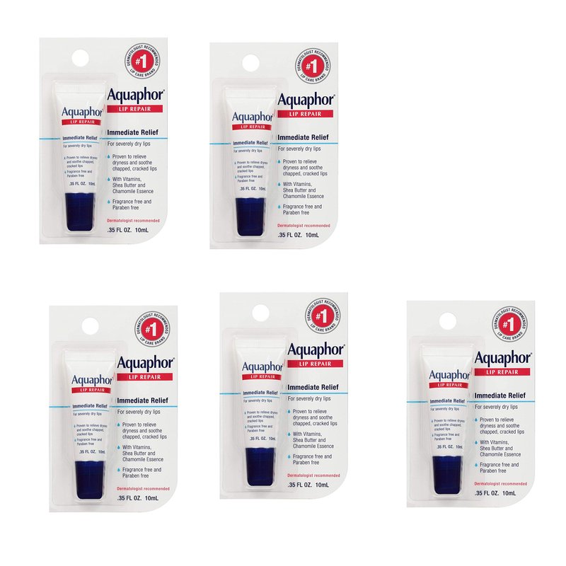 Aquaphor Lip Repair Ointment - Long-lasting Moisture to Soothe Dry Chapped Lips - .35 fl. oz Tube, 5 Pack
