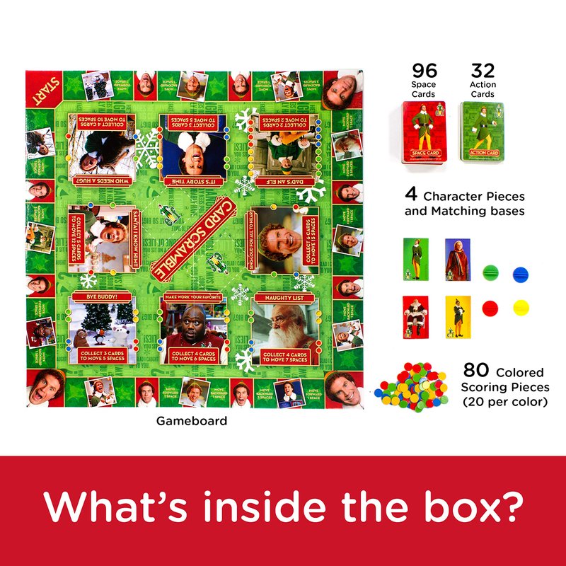 - 100% OFFICIALLY LICENSED ELF MOVIE MERCHANDISE: The Elf Card Scramble Board game is designed by AQUARIUS and officially authorized by Warner Brothers. It's the perfect piece of Elf movie collectible memorabilia to add to your collection