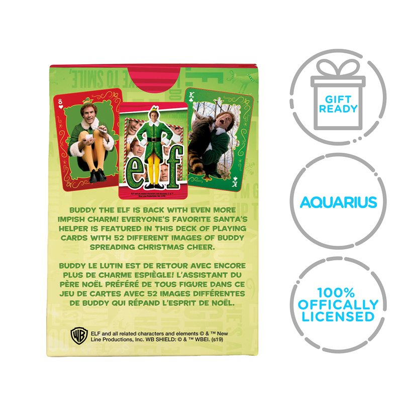 - ELF DECK OF PLAYING CARDS: Buddy the Elf is back with even more impish charm! Everyone’s favorite Santa’s helper is featured in this deck of Elf themed playing cards with 52 different images of Buddy spreading Christmas cheer