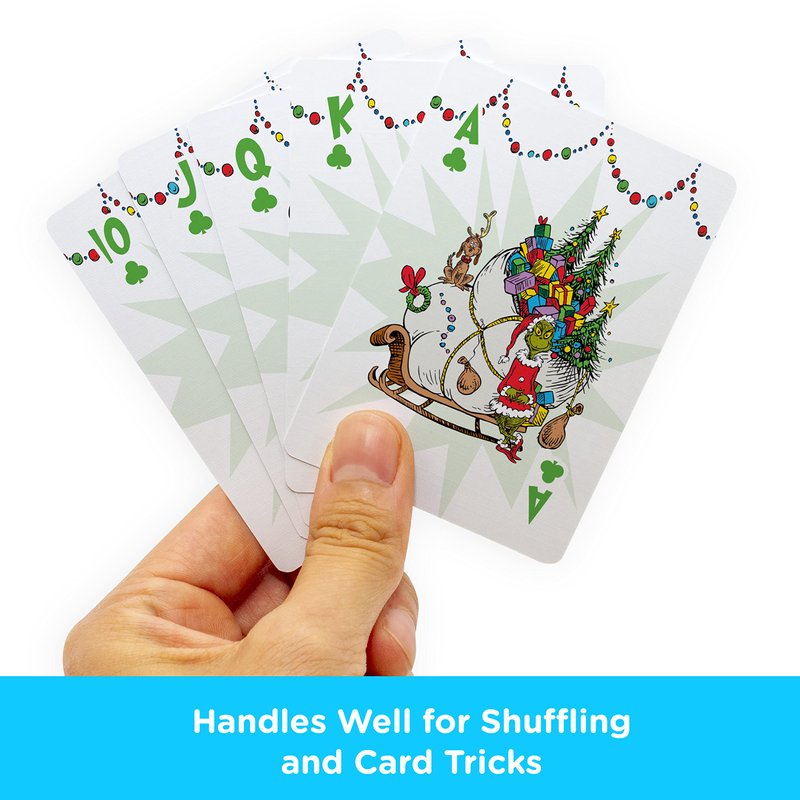 - PLAY YOUR FAVORITE GAME WITH THE WHOLE FAMILY: Put your luck & smarts to the ultimate test with your fellow fans at your next party or game night with this incredibly entertaining deck of Grinch playing cards that the whole family can enjoy