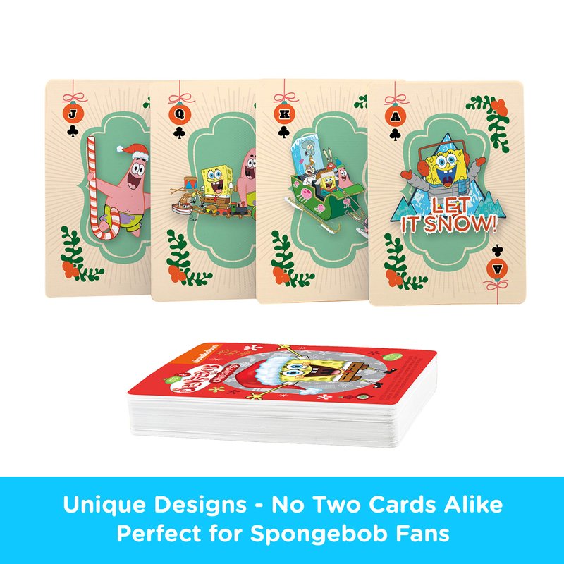 - SPONGEBOB HOLIDAYS DECK OF PLAYING CARDS: Play your favorite card games with friends and family as you dive down to Bikini Bottom and join SpongeBob, Patrick, and the whole gang as they enjoy the season in this deck of cards full of holiday fun!