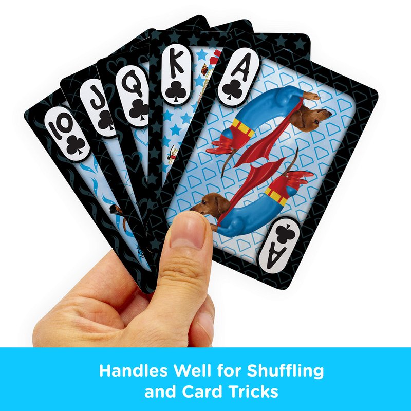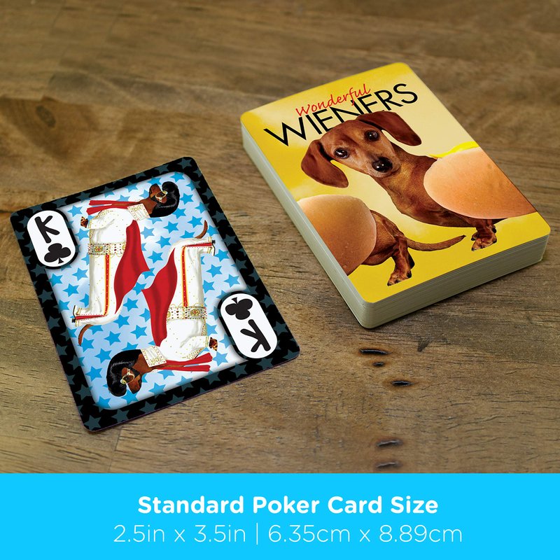 - WONDERFUL WIENERS PLAYING CARDS: Play your favorite card games with friends and family as you enjoy this deck of Dachshunds playing cards including 52 playing cards that show everyone's favorite wiener dog in a variety of costumes making you smile