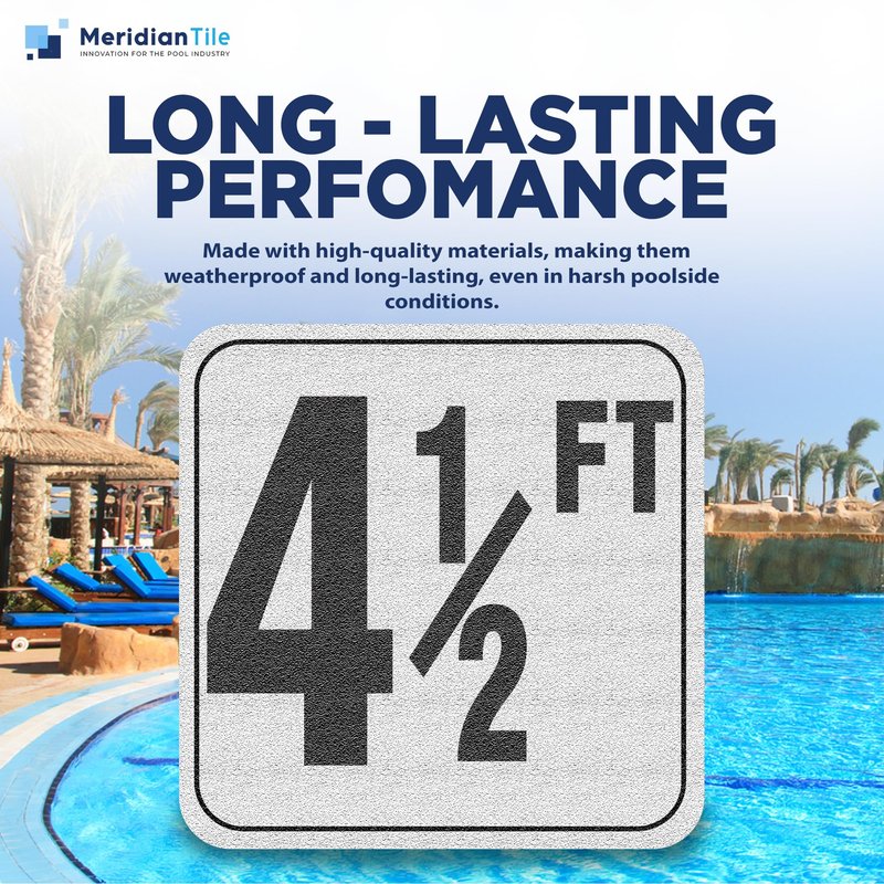 Aquatic Custom Tile, 4 1/2FT Pool Depth Markers, 6x6 Inches Vinyl Pool Stickers, Swimming Pool Number Markers, Pool Safety Signage, Adhesive Pool Depth Markers Stickers for Decks, Made in USA