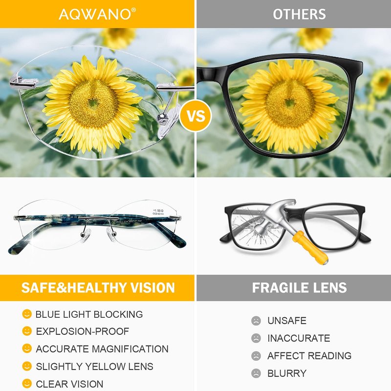 - CLEAR AC LENS - No color difference, bring you good visual experience. Glasses lenses are high-end space AC lens with SHMC tecnology , shock resistant and water proof, dust free and easy to clean let you had clear vision